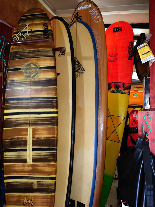 当店は、自社工場も完備しておりますので業者を通さずに皆さん好みのサーフボードをお作りいただけます。「こんな波に挑戦したい!」「安定感のあるものがいい」「こんなデザインのものが欲しい!」そんな皆さまのわがままをおしゃってください!皆さまのご要望にお応えいたします。